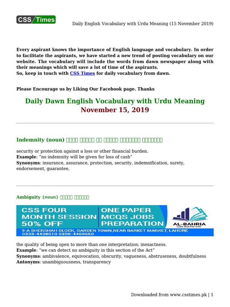 Css Times Daily Dawnvocabulary With Urdu Meaning 26 Facebook - This is the first offline urdu to english dictionary on the web with more than 27000 words, urdu words are in urdu fonts, entire dictionary is downloadable and editable after download.