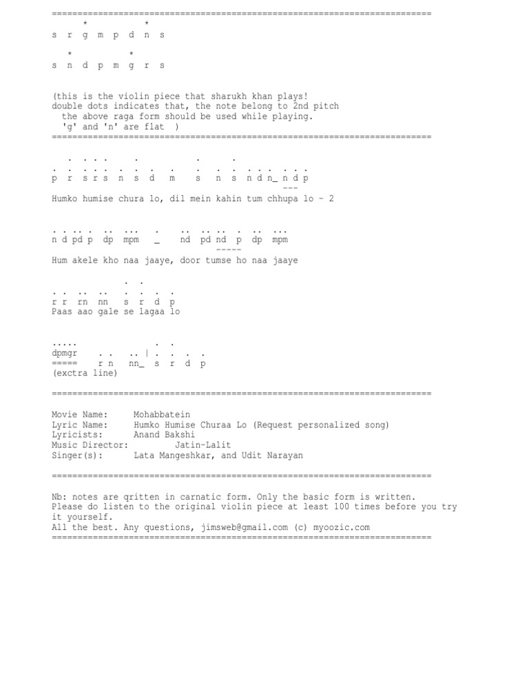 Mohabbatein Violin Notes Sargam - Easy harmonium sargam notes for haji peer sung by salim merchant, osman mir, raj pandit, flute notes, classical notes, lyrics. Mohabbatein Violin Notes Sargam : Best flute and piano notes in sargam.